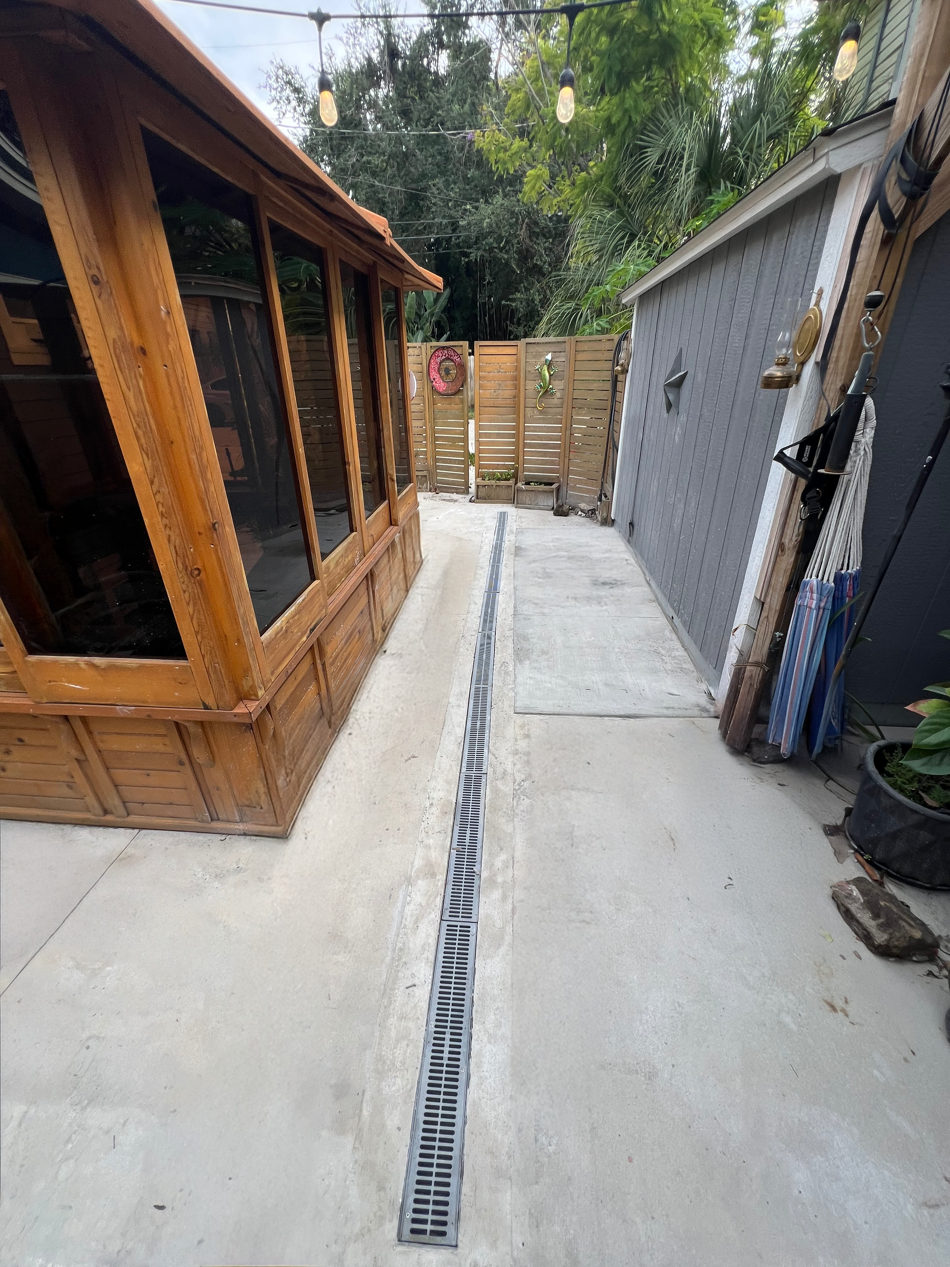 We cut and set channel drains across driveways, patios, and pool decks to move surface water away fast and leave a clean, finished look. Every installation is leveled, sealed, and built to last.