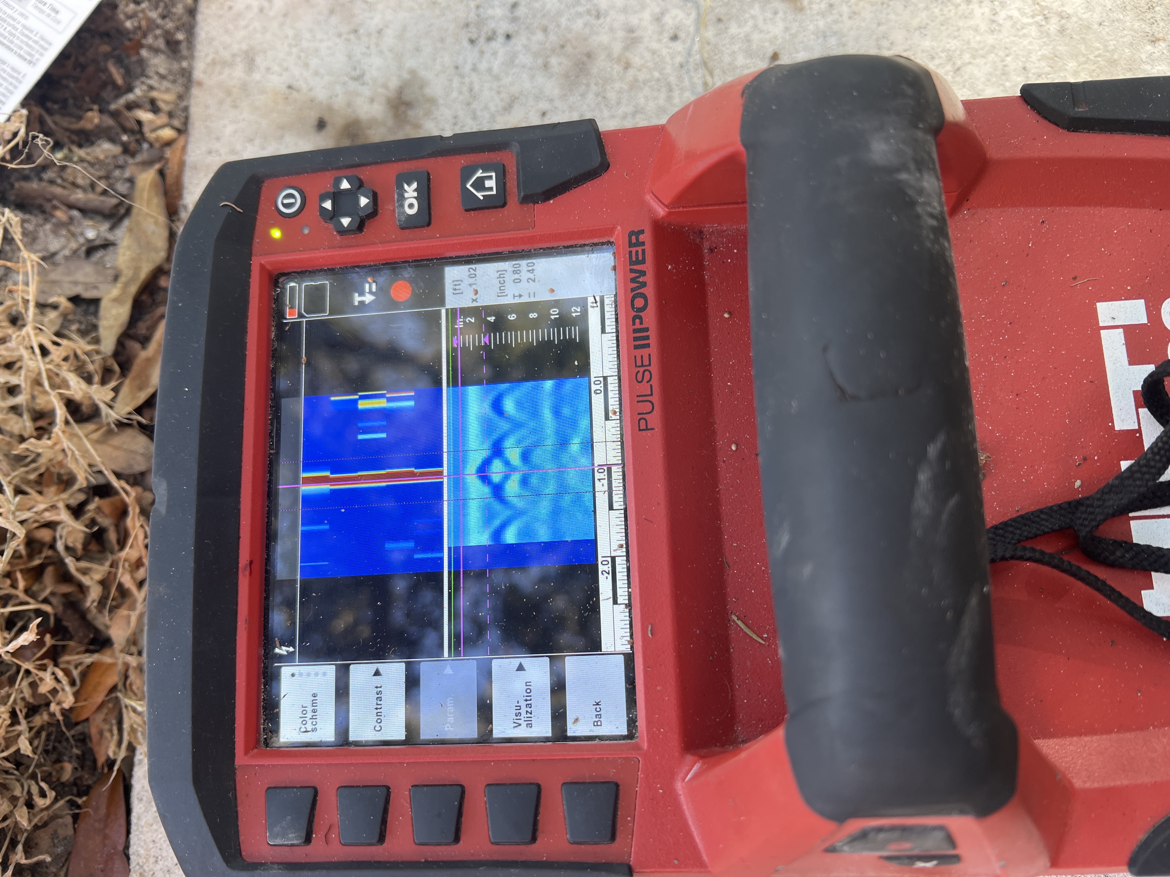 We scan with GPR before drilling to reduce the risk of hitting rebar, conduit, or post-tension cables.